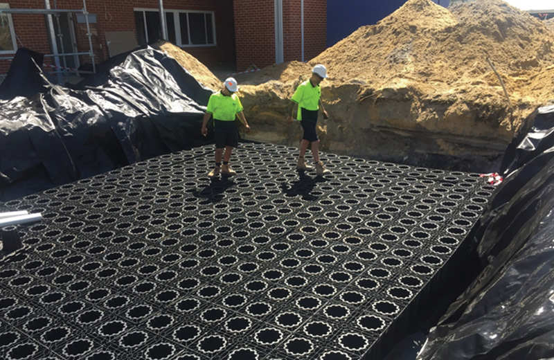 Sustainable surface water management is an integral part of the planning process. Urban designers need to consider managing the quantity as well as the quality of water that is discharged after it has been captured and stored. Plastic geocellular systems have been used for a number of years and are a widely accepted method of creating infiltration and detention systems. When properly integrated, they can enable stormwater discharge at a slower more natural rate. This protects the stormwater system, prevents erosion and increased flow to receiving waters. Pollutants, debris and sediment can be removed from the water so it can be harvested for reuse in parklands, sports fields, commercial agriculture and residential gardens.