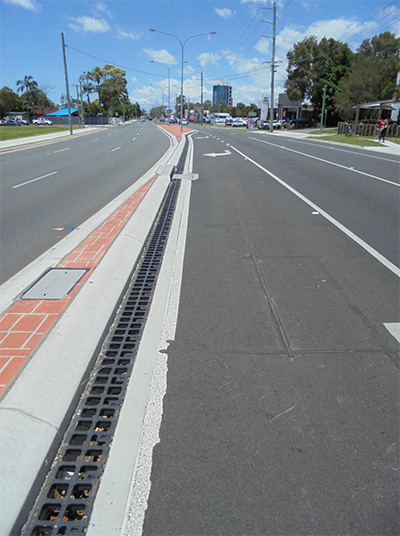 With a tight corridor width to work in, designers had to ensure all surface runoff was immediately captured from the turning lanes without ponding against the centre median. A trench drain was deemed the most effective way to ensure all surface runoff could be captured immediately.