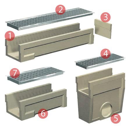 Lightweight, strong, high drainage capacity. DriveDrain® polymer concrete channel is ideal for large areas that need to be drained. This strong channel is supplied with a robust galvanised steel grate.