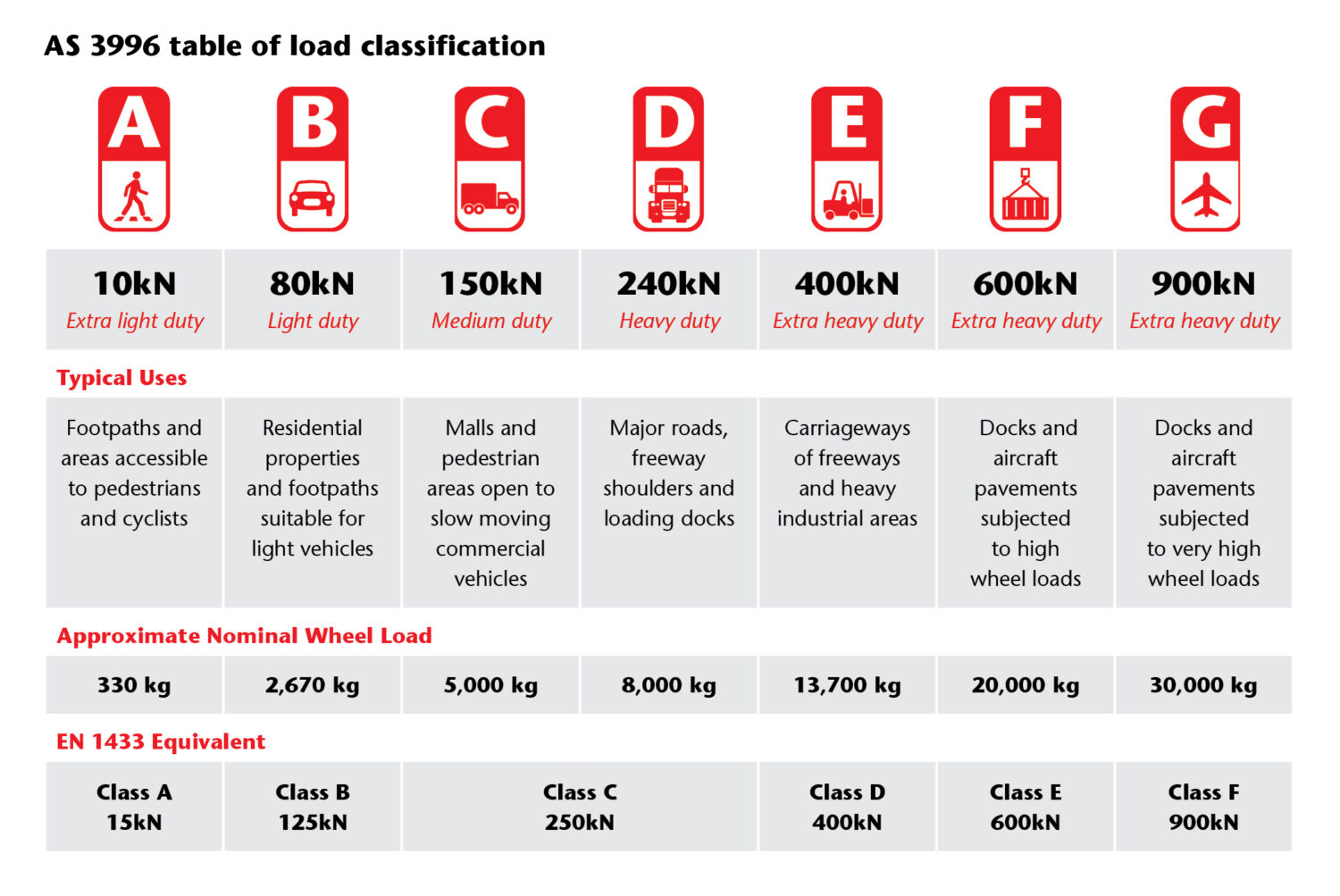 AS 3996/ EN 1433 Load Classifications