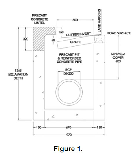 - Kerb Inlet Pit & Pipe System – traditional drainage system (Figure 1.)