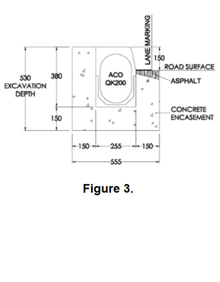 - ACO’s KerbDrain QK200 System – integral kerb and drainage channel (Figure 3.)