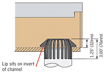 2. Preformed 100mm dia. and 150mm oval knockouts cast on underside of certain channels (00, 5, 10, 010, 0103, 15, 20, 020, 0203, 25, 30, 030, 0303, 35, 40, 040, 0403).