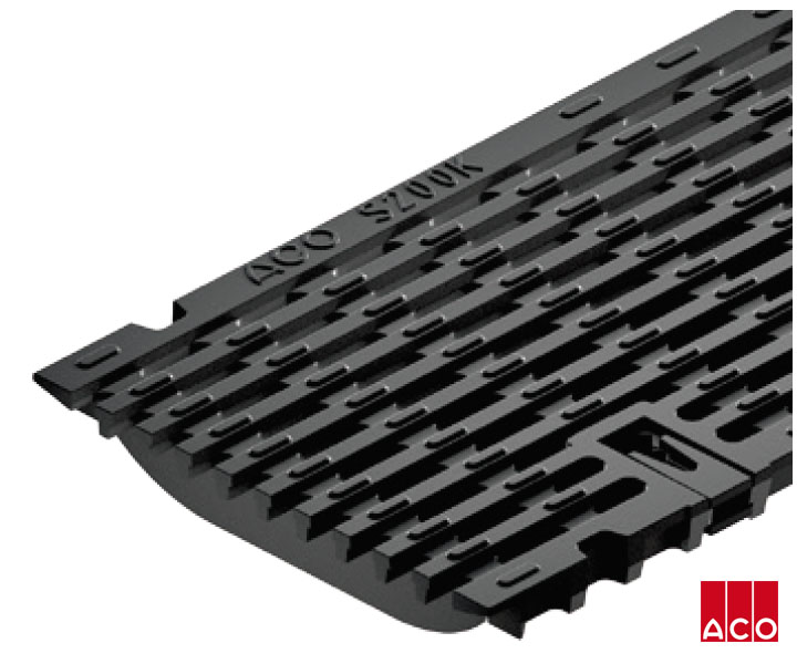 Heavy duty sloped trench drain system available in 100mm (S100K), 200mm (S200K) and 300mm (S300K) internal width for applications requiring the most rugged product.